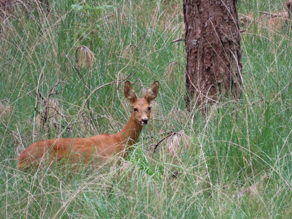 Een topmomentje tijdens het weekend, afgezien van de wandeling met een beminnelijke medewandelaarster, was het spotten van een roodbruin reetje temidden het groen. Mijn eerste reetje op de heide! Op een bepaald moment had het er genoeg van en sprong het uit stilstand makkelijk een meter hoog – best indrukwekkend om te zien hoeveel kracht er in die ranke sierlijke poten schuilt.
