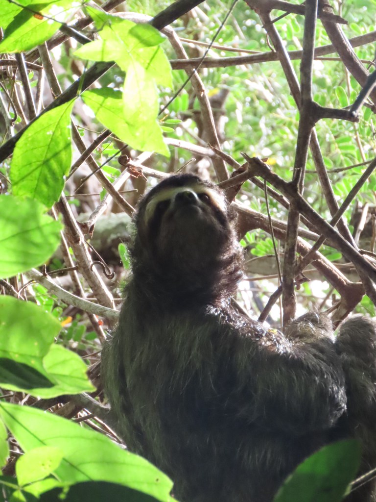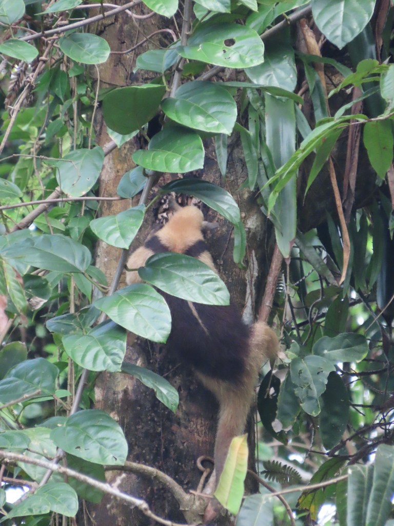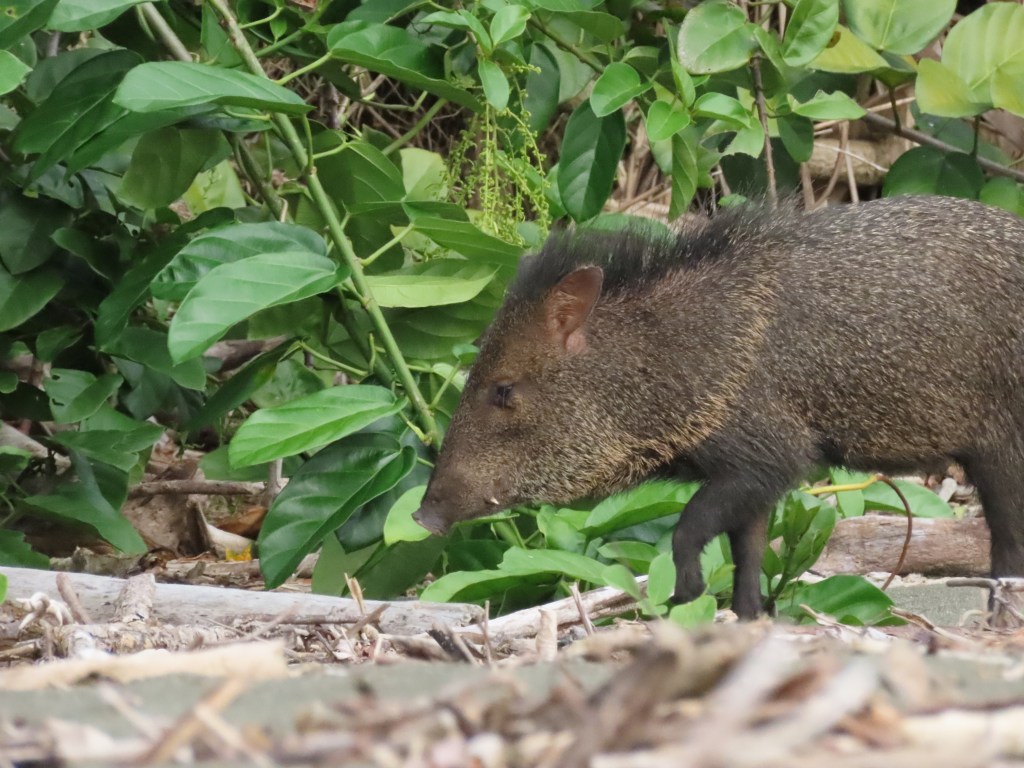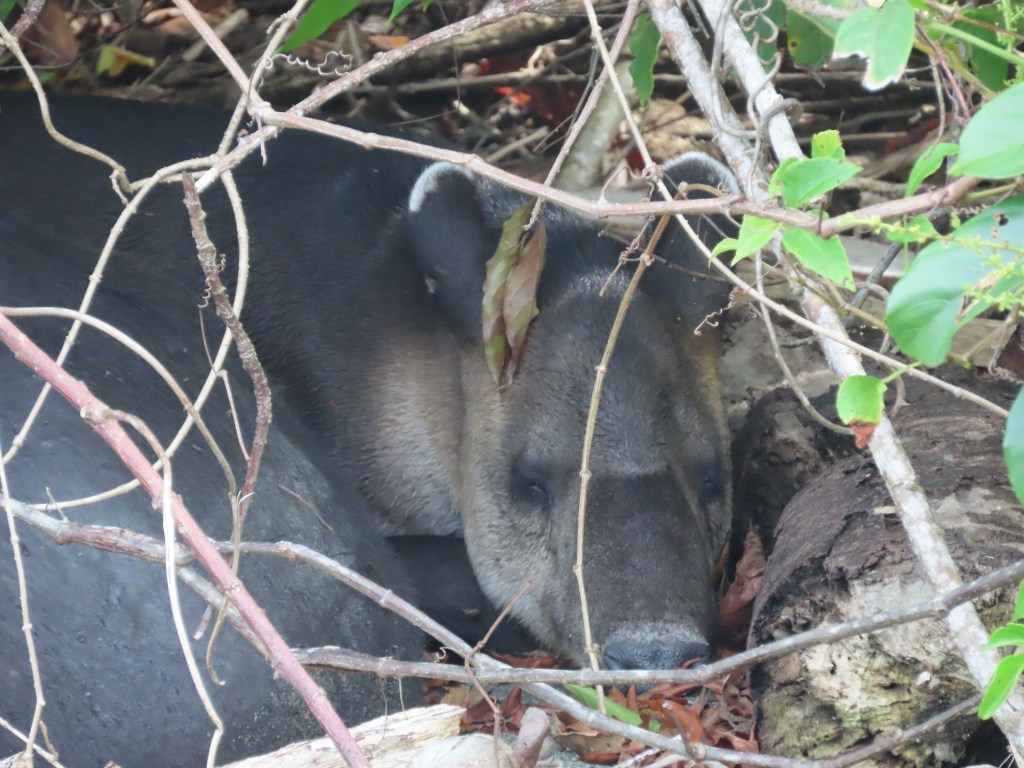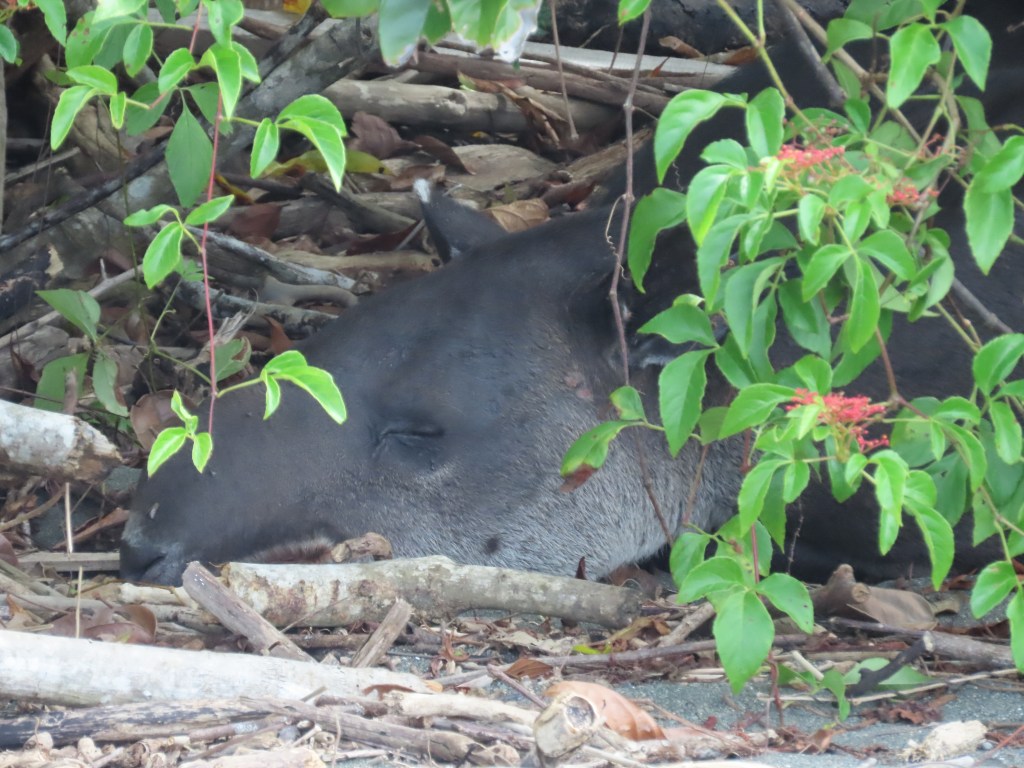 Al één minuut na aankomst was mijn missie volbracht: een tapir zien. Moeder met kind, aan het uitrusten onder een struik aan het strand. Corcovado is wel degelijk een bijzondere plek. Met de densiteit aan wildlife die we er op een halfuur zagen kun je normaal gezien een vakantie vullen. Coati’s (pizotes), pecari’s, een luiaard, een ijverige middelgrote miereneter (de northern tamandua – oso hormiguero), een slapende silky miereneter: allemaal afgevinkt op minder dan een uur tijd – op een gebied nauwelijks een voetbalveld groot zo leek het wel. Later kwamen daar ook krokodillen, een kaaiman, reigers en squirrel monkeys bij. Zoveel wildlife spotten op zo korte tijd: dat voelt eigenlijk helemaal niet natuurlijk aan. De uitleg is dat de dieren hier thuis zijn en dat ze weten dat de mens geen bedreiging vormt. Vanaf toegangspunt Sirena station mogen dagelijks 2 golven toeristen van maximaal 120 man het park bezoeken. Zonder wegwerpplastic en mét een gids. De boot die een uur lang fullspeed langs de lange kust van het nationaal park vaart: je beseft dat dit een waardevol, ongerept gebied is. En het is goed dat de Tico’s en Tica’s er zo zuinig op zijn. Maar ik beleefde meer spanning en plezier aan het observeren van een enkele schimmige, pizote in de verte toen ik in El Zota zat, dan aan de frontale ontmoeting met een dozijn ervan – temidden van horden medetoeristen.