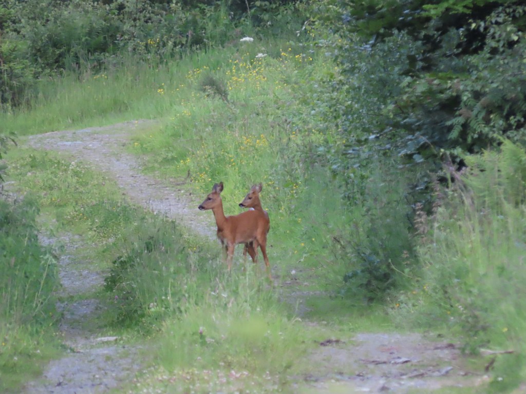 Geluk is: een paar reetjes tegenkomen op het pad. Genieten van mooie landschappen. Nu eens goed doorstappen, dan weer lummelen en genieten van de stilte in een stukje onbekend bos. Geen vos te zien dit jaar (en dus ook geen kleintjes). Wel een paar dassen gespot. Goeddoorvoede, dikke drommels die eens in beweging nog vaart weten te maken. Het grappigse moment? Peuter merel – een dikke pluizenbol – die het vliegen ontdekt maar zijn landing op een tak miste. Dat komt nog wel, die stuurmanskunst. Ook belangwekkend: een vogel, maar vraag me niet dewelke (misschien beetje groter dan een merel, geen gaai) die tegen een topsnelheid op anderhalve meter hoogte door een dichtbetakt dennenbos scheerde en zwenkte. Zo snel, zo behendig, zo geluidloos. Ik heb hem/haar maar twee seconden gezien: op 1 seconde zat hij 50 meter verder, de volgende seconde maakte hij een 90%-bocht naar links en weer een seconde later was hij verdwenen. Full speed. Geen verwondering hier, slechts bewondering.
