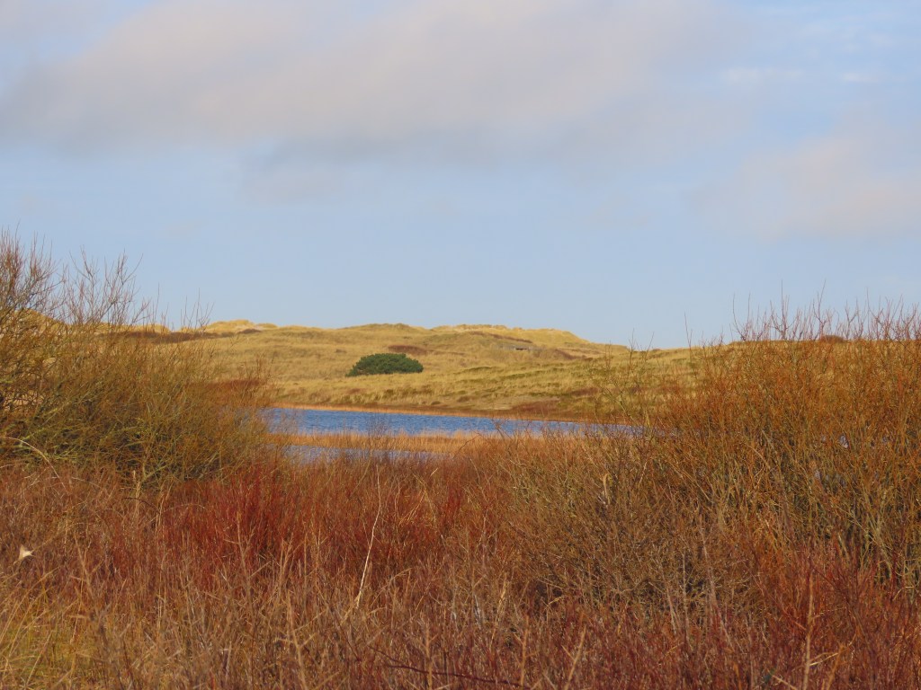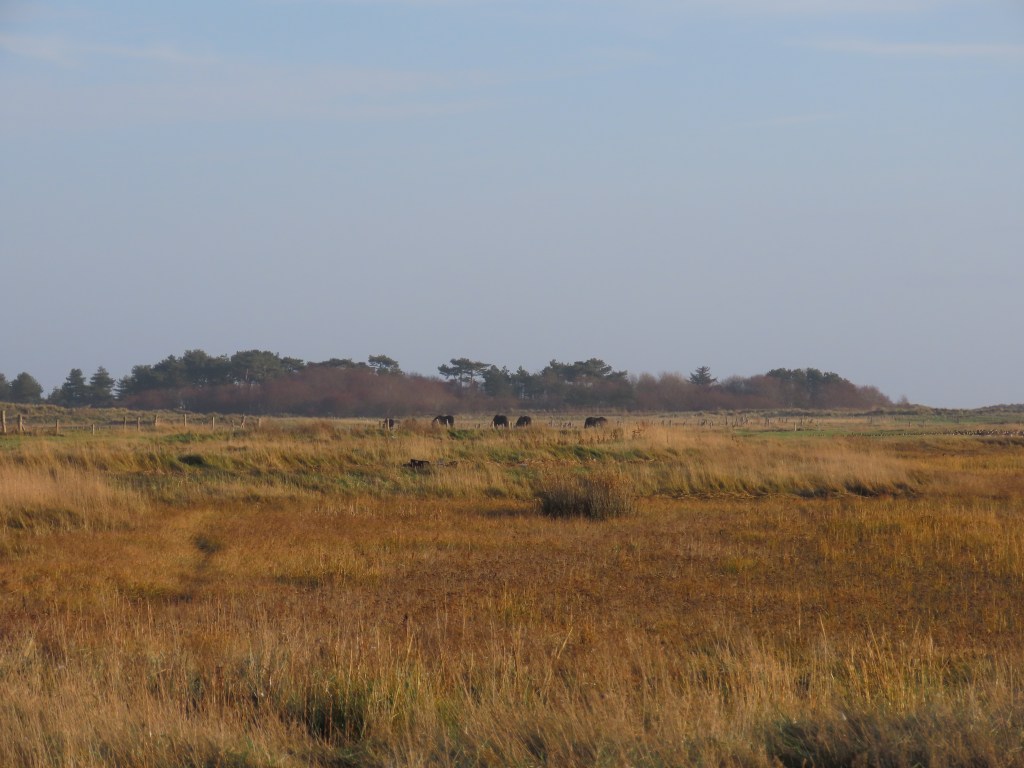 De kuststrook en het wad stelden niet teleur: ik vond er Chinese sigaretten, een Deense trawlerboei, vogelskeletten, schelpen en stenen. Ik wandelde door de polders, genoot van het aanzicht van de bonkige paarden: werkpaarden maar toch elegant. Ongelooflijk elegant. Ik zag een fazant. Ik ging ’s nachts in het natuurgebied kijken naar de sterren maar het was volle maan. De wandeling richting Noordzee was fabelachtig van schoonheid – vaak waande je je in de Nevada-woestijn of zo: de duinen in de verte als grillige rotsformaties. Het kleurenpalet varieerde van strogeel over bruinrood tot grasgroen en diepblauw. Ik verdwaalde in de zompige vennen en duinen, ik liet me uitwaaien en genoot elke seconde van de ruimte rondom me. Natuur en zee zover het oog reikt. Ik voelde me de koning te rijk. ’s Avonds las ik ‘Eens Ging de Zee Hier Tekeer’ van Eva Vriend. Betoverende geschiedschrijving. ’s Nachts kon ik niet slapen van de wind die tegen het huisje beukte. De mensen die ik tegenkwam waren open, vriendelijk. In voor een praatje. Ik ging naar huis met een keelontsteking maar ik had wel de tijd van mijn leven. Drie dagen rust en ruimte – vreemd hoe zo’n korte ervaring zich blijkbaar toch kan nestelen in het lichaam en de geest. Ik denk dat ik wat anders naar bepaalde dingen ben beginnen kijken. Een vrije horizon, de wind, het getij, de golfslag. Er zit iets van beweging in, in dat eilandbestaan. Een mens is geen eiland luidt het spreekwoord. Misschien net wel, denk ik. Laat andere mensen maar aanmeren, toestromen, eventjes meedeinen en weer vertrekken. Een eiland is continu in beweging, groeit aan, kalft af, biedt weerstand maar plooit ook mee. Ik denk dat ik even mogen proeven heb van het befaamde eilandgevoel. Iets in mij fluistert nu al: trein, trein, trein, veerboot. En wie weet ben je thuis.